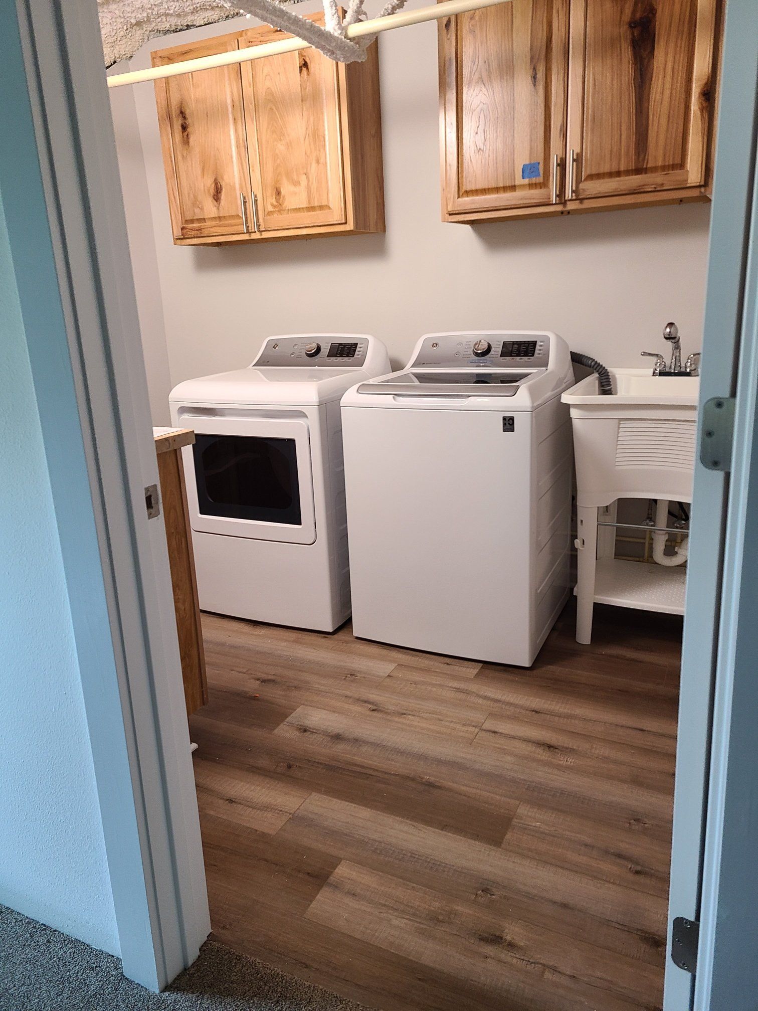 - Luxury vinyl flooring throughout, with carpet bedroom floors